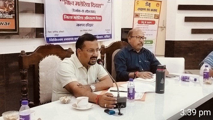 हरिद्वार: विश्व मलेरिया दिवस पर जिलाधिकारी कर्मेंद्र सिंह ने डेंगू और मलेरिया की रोकथाम के लिए अंतर विभागीय बैठक की अध्यक्षता की। उन्होंने अधिकारियों से आपसी समन्वय से कार्य करने और स्वच्छता पर ध्यान देने का निर्देश दिया। जिलाधिकारी ने स्वास्थ्य विभाग को जागरूकता अभियान चलाने और चिकित्सा सुविधाओं को सुनिश्चित करने के निर्देश दिए। उन्होंने आंगनबाड़ी केंद्रों और विद्यालयों के माध्यम से भी जानकारी प्रसारित करने की बात कही। जल संस्थान और नगर निकायों को पानी के रिसाव को ठीक करने और नालियों की सफाई करने के निर्देश दिए गए। मुख्य चिकित्सा अधिकारी डॉ आर के सिंह ने तैयारियों की जानकारी दी और बताया कि अस्पतालों में 100 बेड आरक्षित हैं और पर्याप्त ब्लड बैंक उपलब्ध हैं। बैठक में विभिन्न विभागों के अधिकारी मौजूद रहे।