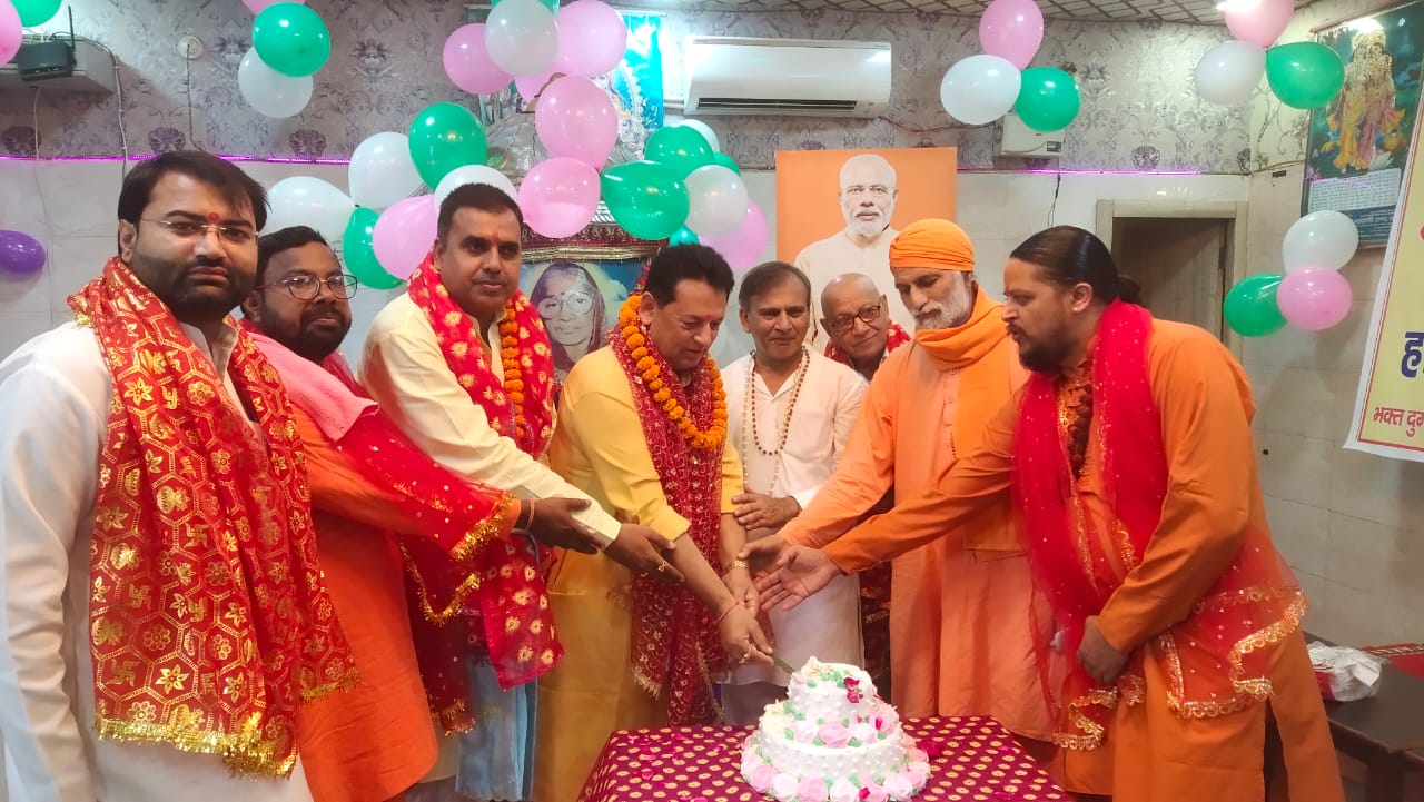 संतों ने दूध व फलों से बने केक काटकर की प्रधानमंत्री नरेन्द्र मोदी की दीर्घायु की कामना
