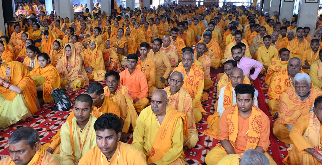 शांतिकुंज में सामूहिक गायत्री साधना अनुष्ठान में जुटे हजारों लोग