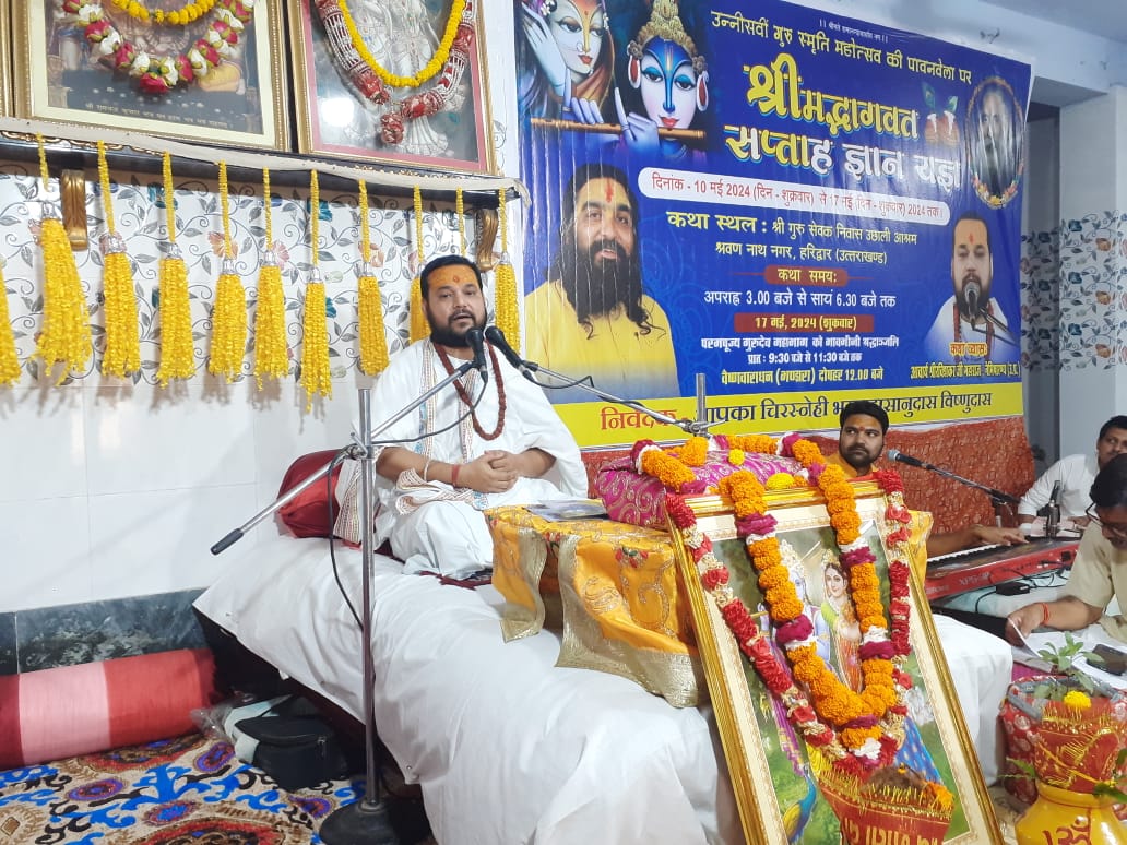 हरिद्वार। श्री गुरु सेवक निवास उछाली आश्रम में जारी श्रीमद् भागवत सप्ताह यज्ञ के तीसरे दिन कथाव्यास आचार्य रवि शंकर जी महाराज नैमिषारण्य ने श्रीमद भागवत कथा की शुरुआत मंत्र पूजन के साथ की। उन्होंने कहा कि भागवत कथा के श्रवण मात्र से मनुष्य को मोक्ष की प्राप्ति होती है इसीलिए मनुष्य को भागवत कथा का रसपान पूरे जीवन भर करना चाहिए। उन्होंने कथा के माध्यम से बताया कि किन किन लोगों को भागवत कथा सुनना चाहिए और क्यों सुनना चाहिए। उन्होंने बताया कि संसार में जिस किसी भी मनुष्य द्वारा जाने अंजाने में कोई ना कोई पाप जरूर हो जाता है, जो व्यक्ति क्रोधी स्वभाव का हो, छल कपट वाला व्यक्ति हो, क्षुठ बोलता हो ऐसे लोगो को भागवत कथा सुनने से उसको पाप कर्मों से मुक्ति मिलती है। उन्होंने कहा कि गंगा तट पर होने वाले भागवत का महात्म्य और भी अधिक बढ़ जाता है। कथा व्यास जी ने बताया कि भागवत कथा में महात्मा और दुरुत्मा का वर्णन बताया गया है। उन्होंने कहा कि सेवा भाव तीन तरह के होते हैं एक सेवक होता है जो मालिक के खाने के बाद काम करता है दूसरा वह होता है जो खाने के बाद भी पीछे भागता है और एक वह होता है जो मालिक है या ना कहे वह पूरे मनोयोग से काम करता है इसी तरह संसार में भी वक्त वह होता है जो भगवान को बिना जरुरत के भी याद करें तो भगवान भी उसे याद करते हैं। इस अवसर पर उछाली आश्रम के परमाध्यक्ष महंत विष्णु दास महाराज ने कहा कि श्री भागवत कथा का श्रवण कर उसको अपने जीवन में उतारना काफी कठिन है लेकिन इस कलयुग में भवसागर से पार उतारने का साधन भी है। सनातन धर्म और संस्कृति में हमारे वेदों का विशेष स्थान हैं, जो प्राणियों के कल्याण की बात करता है। उन्होंने कहा कि गृहस्थ जीवन में जीवन यापन करने वाले सभी मनुष्यों को भागवत कथा का श्रवण अवश्य करना चाहिए। कथा में मुख्य रूप से यजमान नोएडा से पहुंचे श्रीमती सीमा एवं रामकिशन सेठ श्रीमती प्रीति एवं विवेक गोस्वामी, श्रीमती दमन रानी, नागपाल राघव राधे कृष्णा नागपाल, लेना नागपाल, आर्यन नागपाल, मुंबई, फरीदाबाद से श्रीमती राधा मनोचा, रोहित मनोचा, श्रीमती शिखा योगेश ,केदारनाथ नागपाल, श्रीमती मधु सुरेश अनेजा, श्रीमती नेहा अंशुल अनेजा, श्रीमती फाल्गुनी आकाश अनेजा, श्रीमती ममता नागपाल,श्रीमती ज्योति हरीश नागपाल, कुणाल एकता वैभव नागपाल सहित बड़ी संख्या में आसपास के श्रद्धालुगण भी पहुंचे।