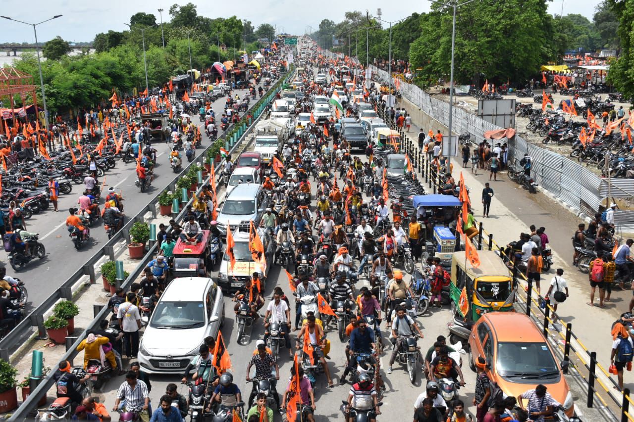 कांवड़ तीर्थ यात्रियों के केसरिया रंग में रंगी धर्मनगरी